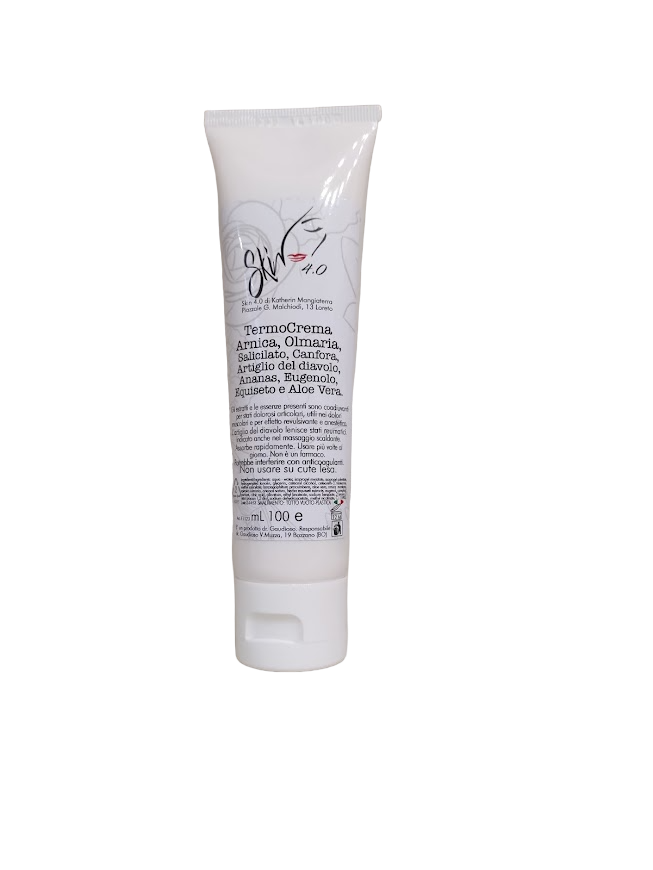 TermoCrema con Arnica, Olmaria, Salicilato, Canfora, Artiglio del Diavolo, Ananas, Eugenolo, Equiseto e Aloe Vera.